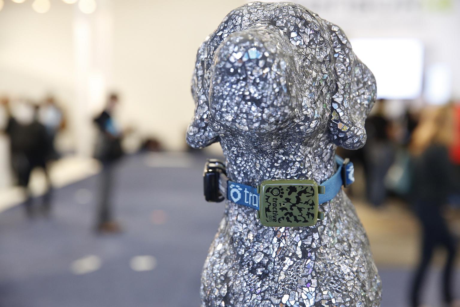 The Tractive GPS Pet Tracker on display at CES 2016 in Las Vegas, US, on Jan 6, 2016.