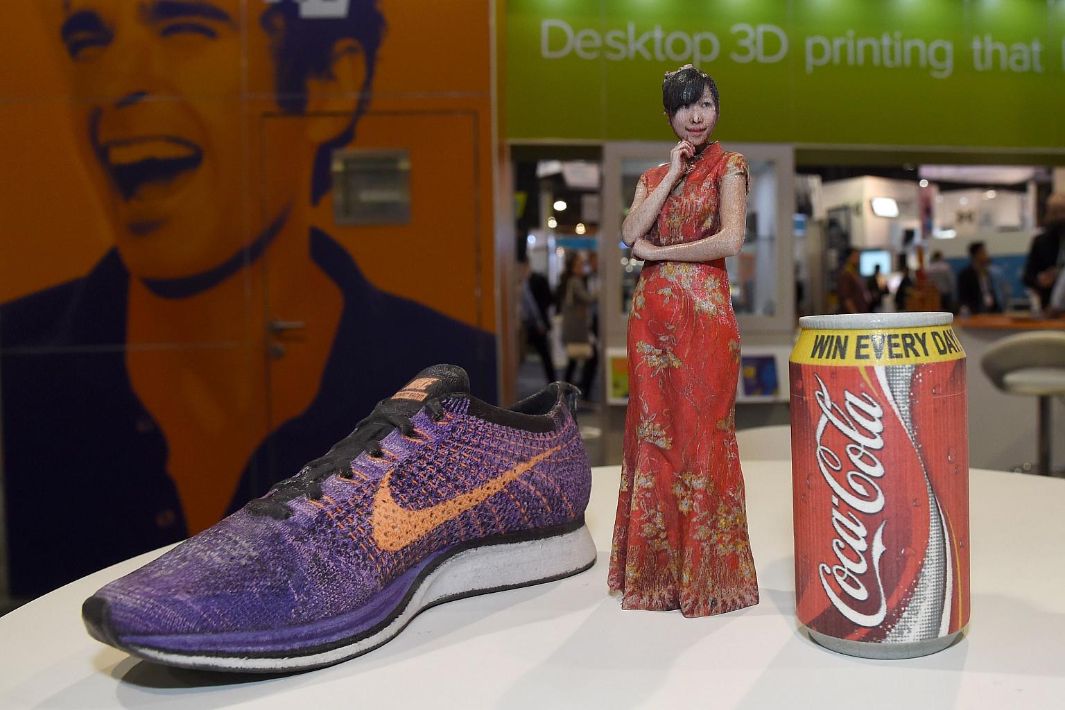 Items printed by the Mcor Arke, the first full-color desktop 3D printer, are displayed at CES 2016.