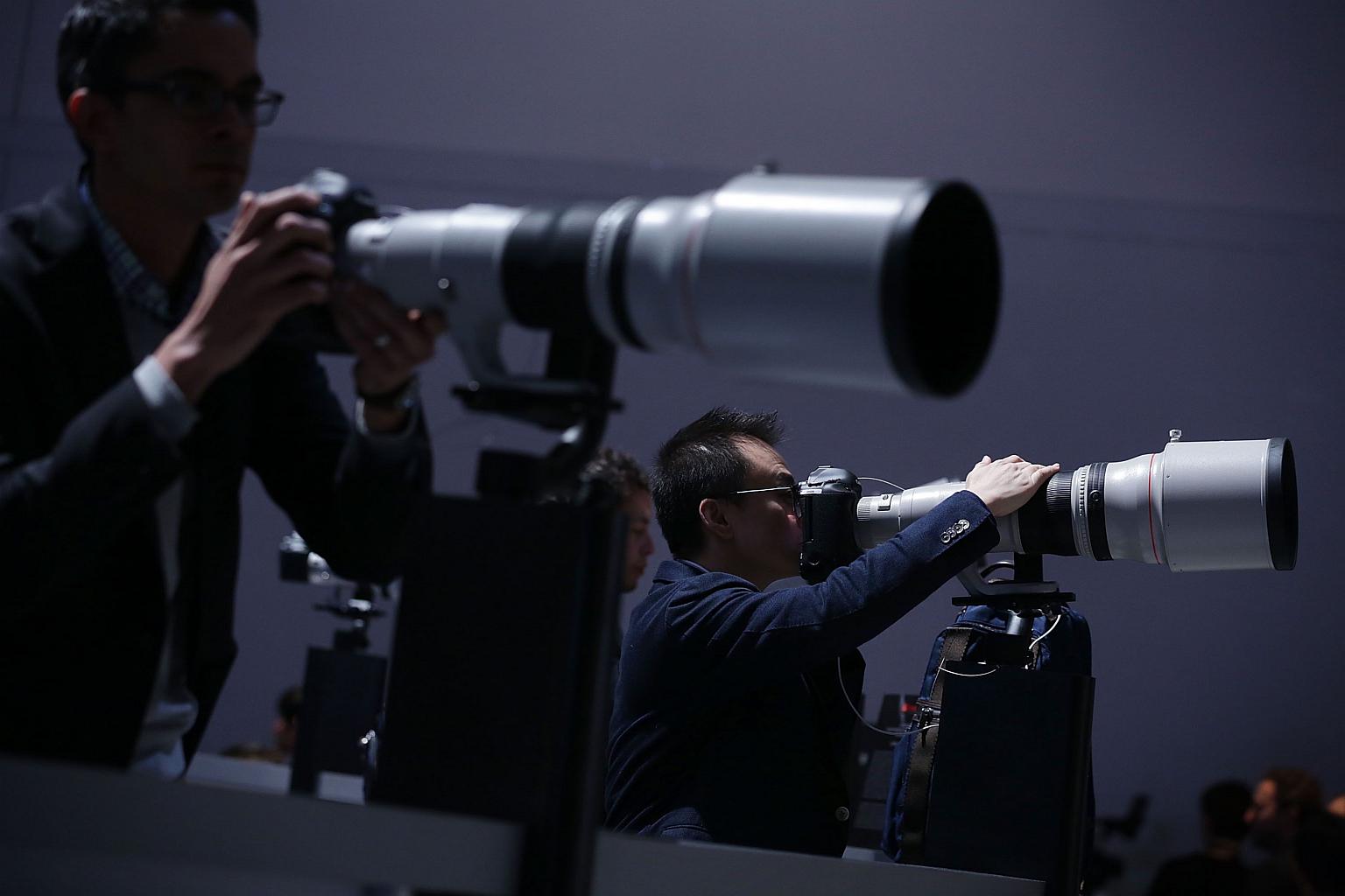 Show attendees trying out Canon photo equipment at CES 2016.