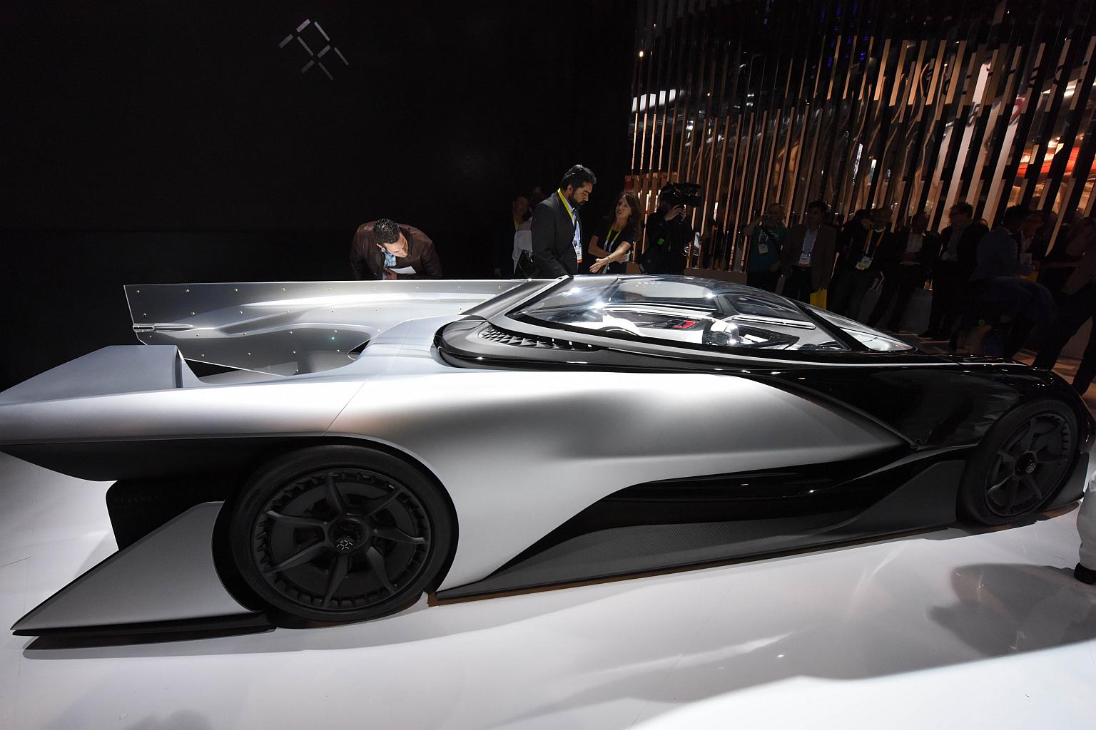 A handout photo provided by the Las Vegas News Bureau showing The Faraday Future FFZero1 all-electric concept car on display at CES 2016.
