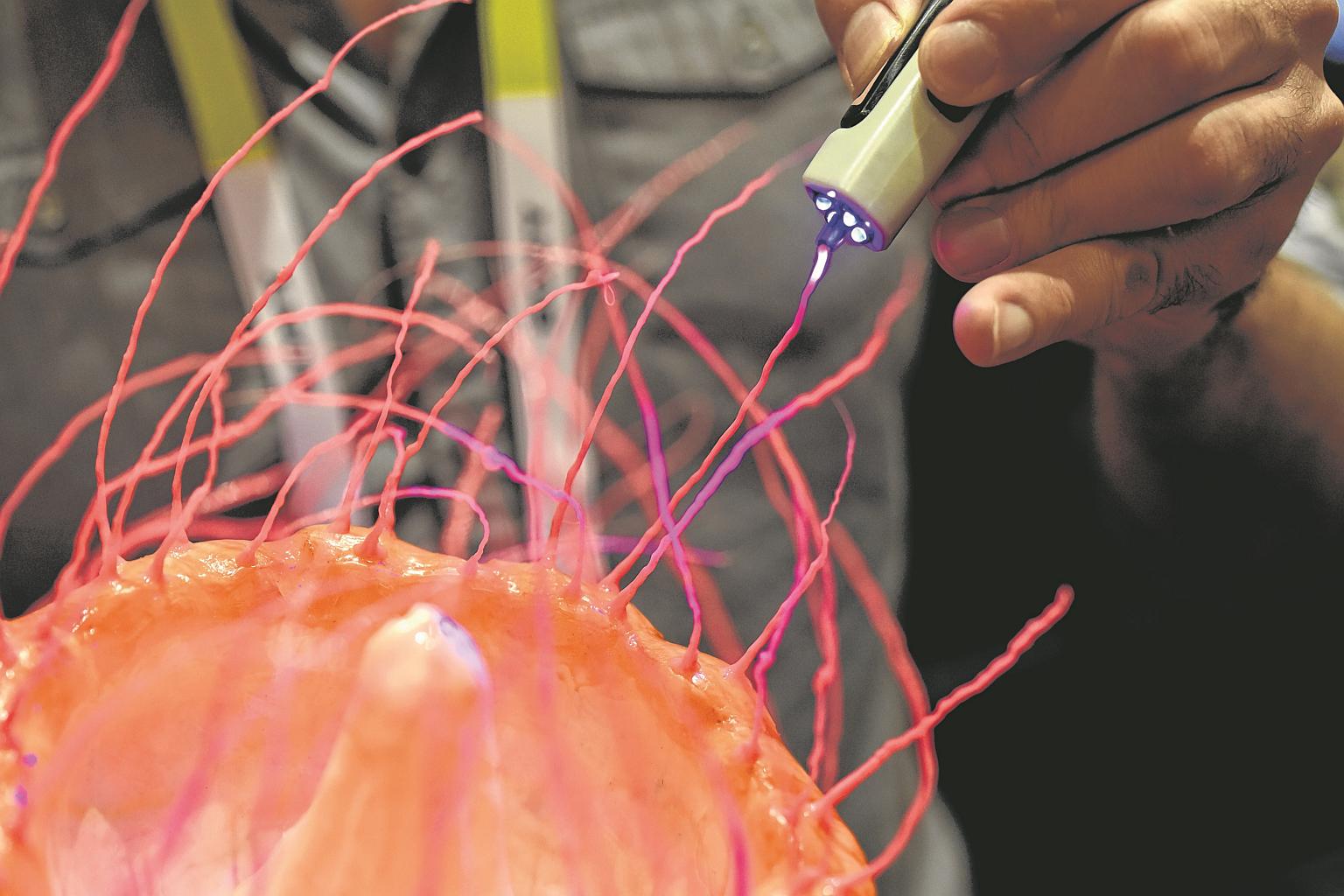 An exhibitor demonstrating a 3-D drawing pen during ShowStoppers at CES 2016.