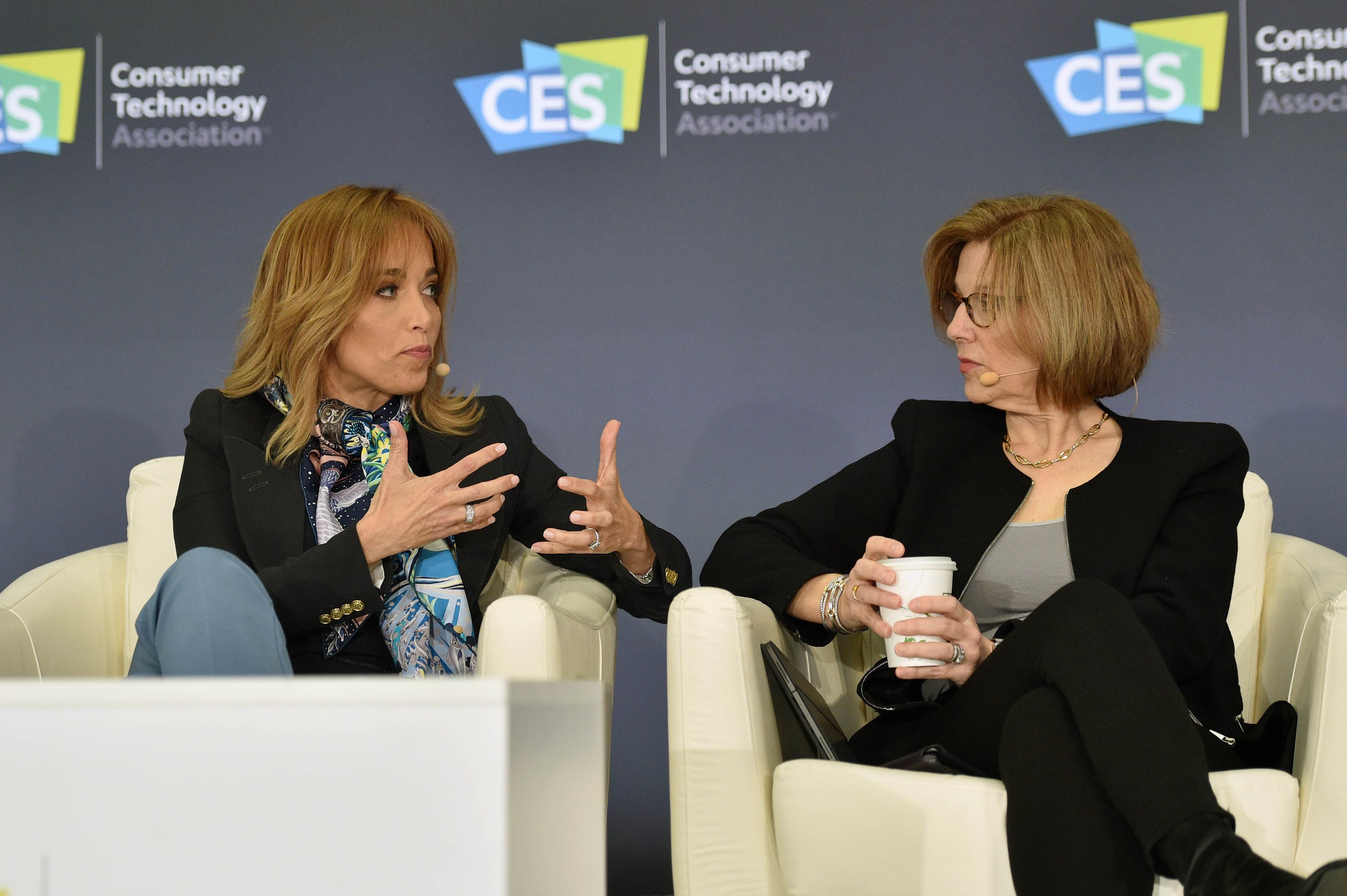Facebook's chief privacy officer at Facebook Erin Egan (left) and Apple's senior director of global privacy Jane Horvath, participate in a privacy roundtable at CES 2020.
