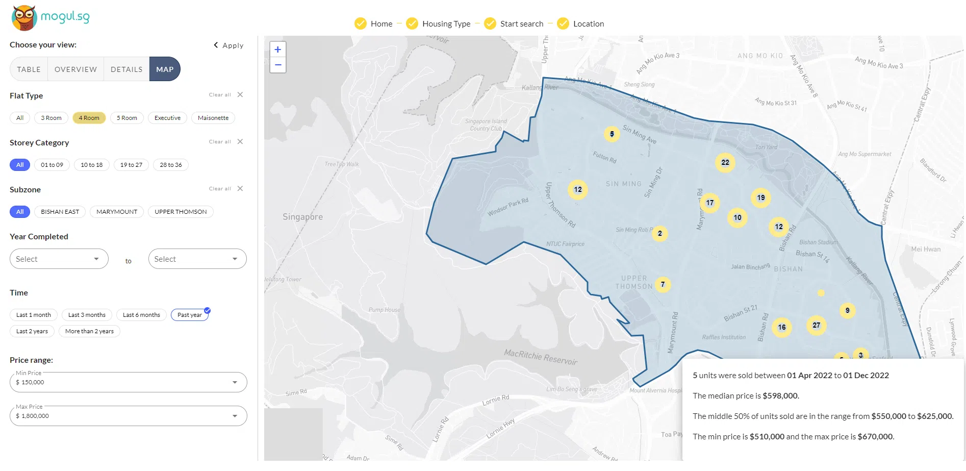 The free tool, developed and launched on Tuesday by property portal Mogul.sg, pulls data from sources including the Building and Construction Authority, the Housing Board and partnering estate agencies.