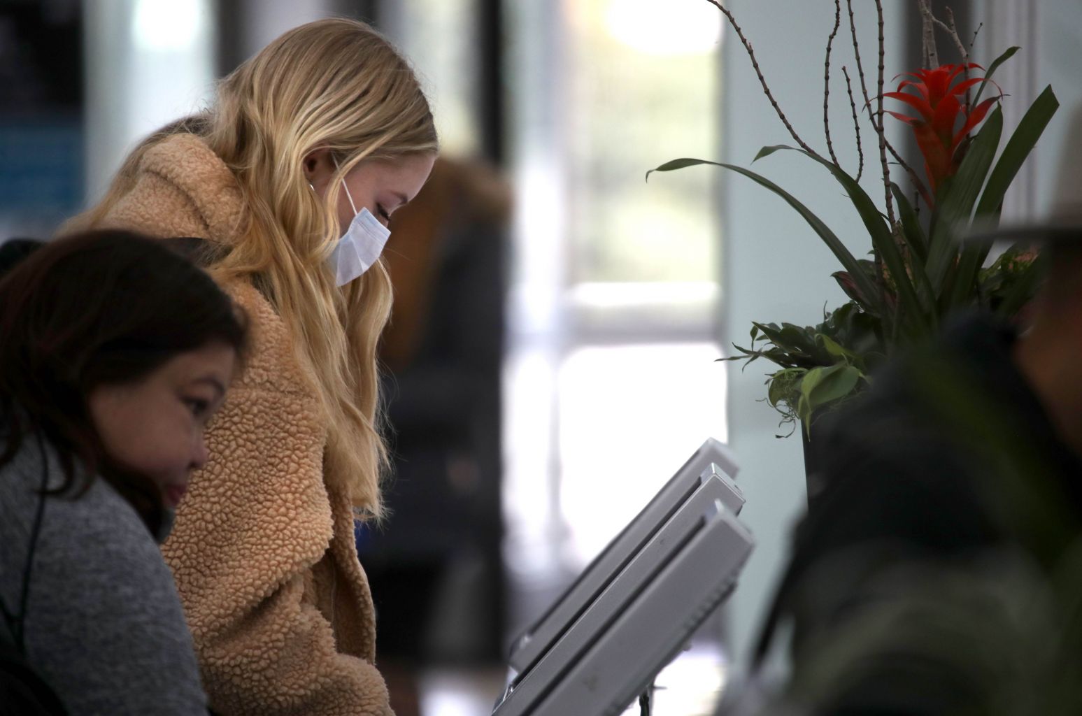 A passenger checks in for an international flight at San Francisco International Airport on March 06, 2020.