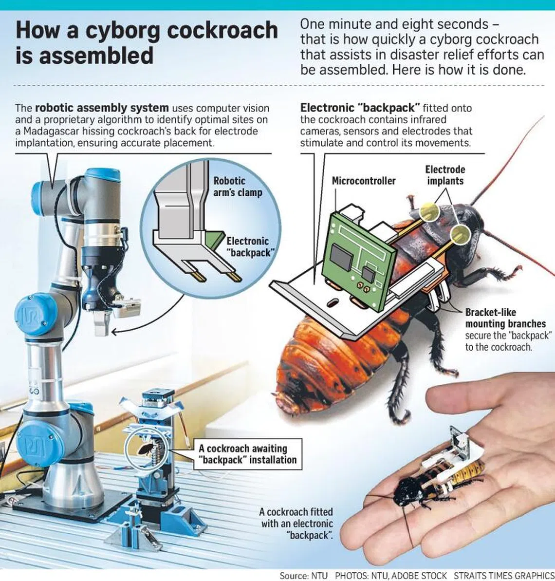 The cyborg roaches were developed by the Home Team Science and Technology Agency, together with NTU and Klass Engineering and Solutions.