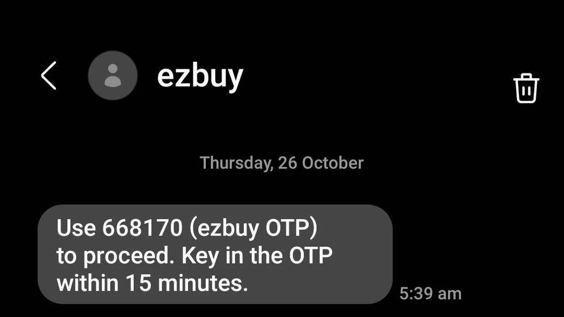 In the case of ezbuy, people reported receiving an SMS that said: “Use xxxxxx (ezbuy OTP) to proceed. Key in the OTP within 15 minutes.” Affected individuals said they were not users of the ezbuy platform.