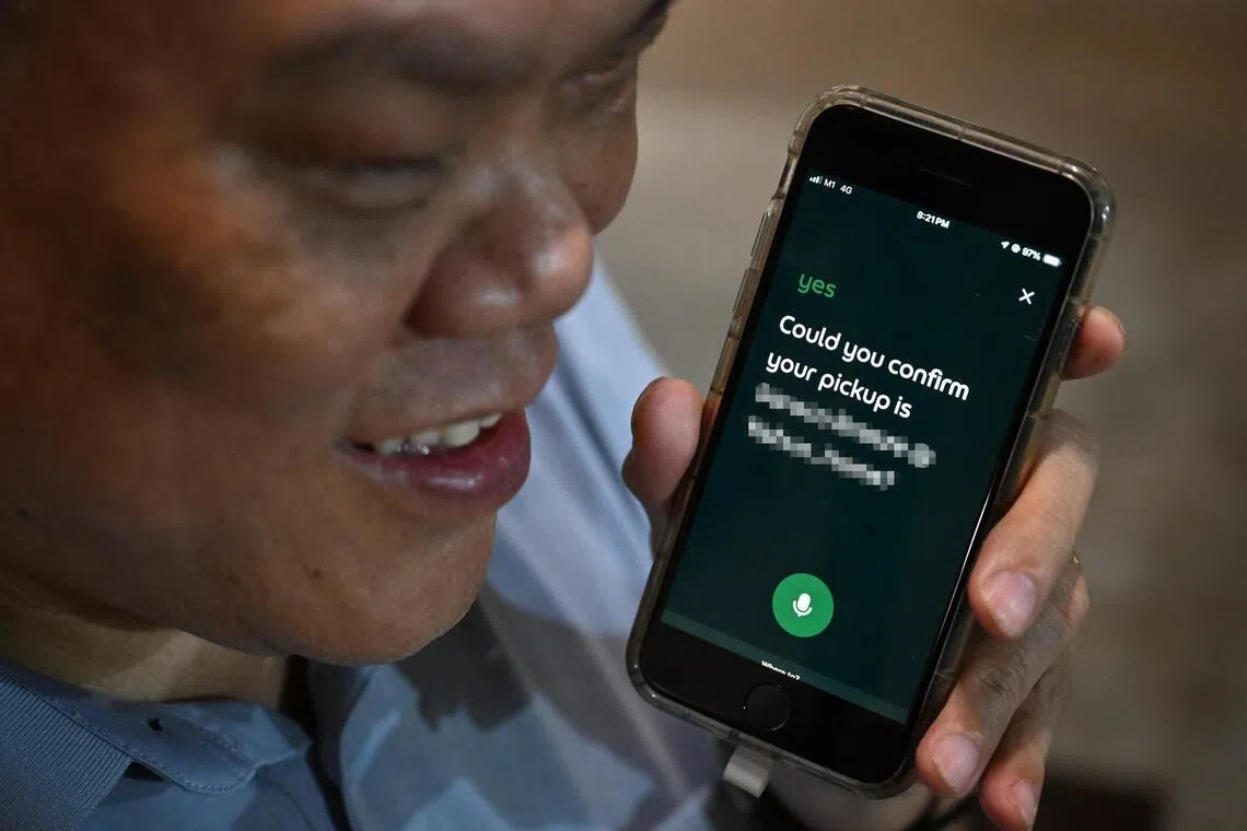 Mr Peter Lim, who is visually impaired, using the AI voice assistant to book a Grab ride from his home to a nearby mall on July 18, 2025.