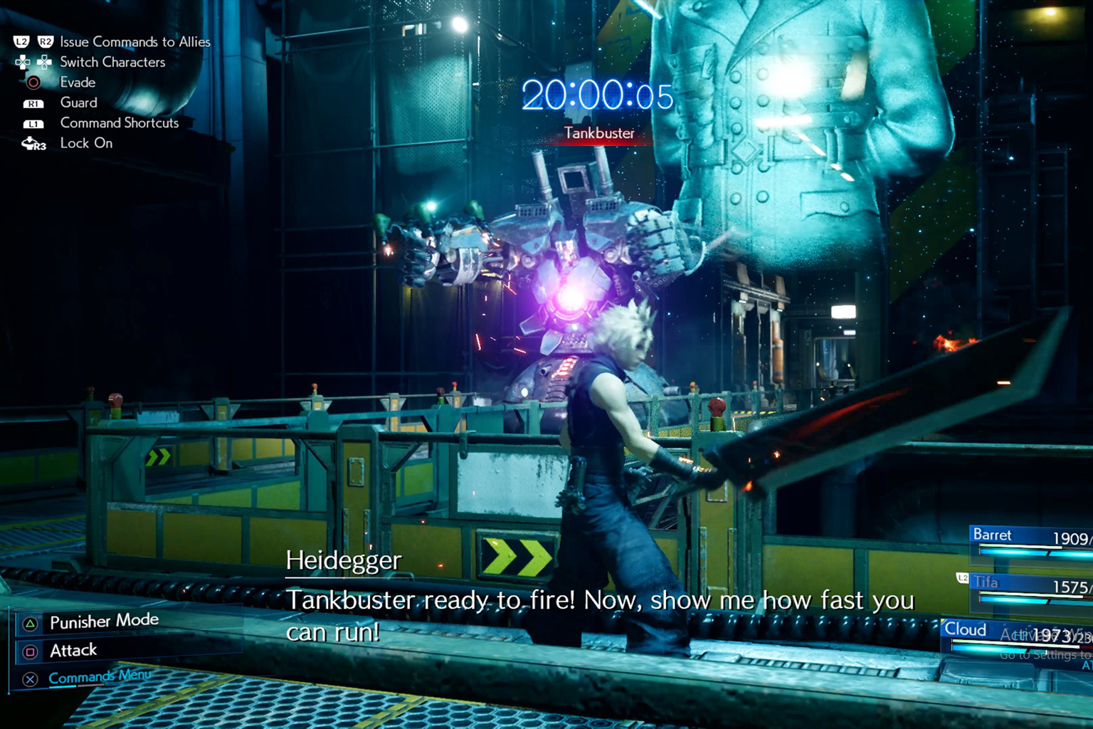 In a boss encounter with the Air Buster, a flying robot, I often switched to another character, Barret, as he can shoot the boss when it flies out of reach of Cloud's sword.