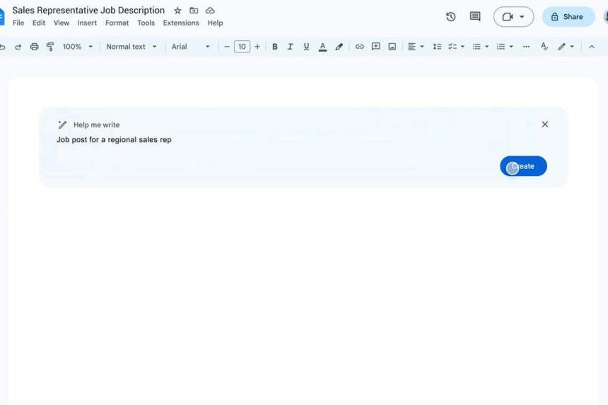 On Google Docs, users can make use of the AI by clicking the “help me write” pop-up and entering a topic. Once the bot is done writing, users can use proofreading tools to spot repetition and tweak the tone of voice.