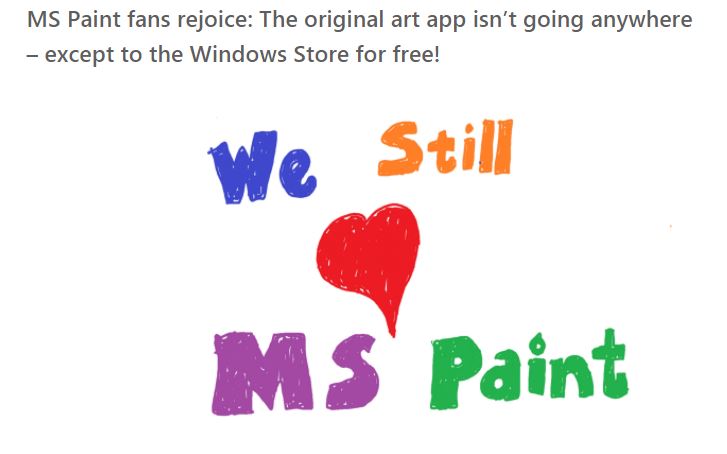 She wrote: "MS Paint is here to stay, it will just have a new home soon, in the Windows Store where it will be available for free."