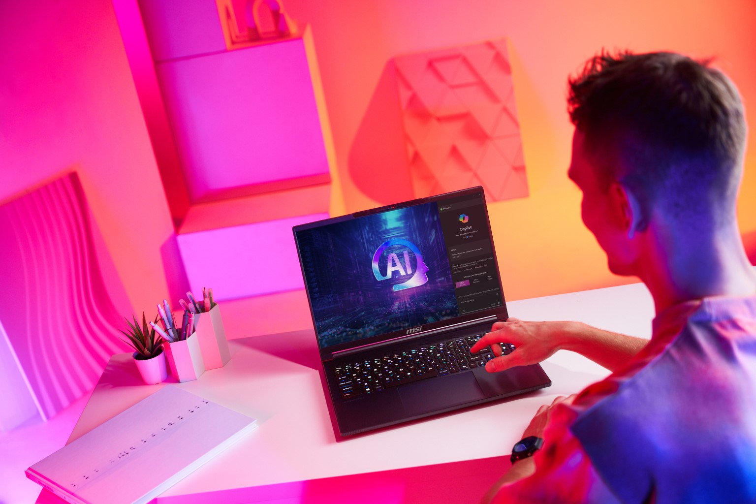 - Creative professionals will find a handy assistant in the MSI AI Artist tool, which lets users generate images through text prompts directly on their computer. This edge-based technology means that users can create concept art and ideas quickly while ensuring that the newly generated images and ideas are stored securely on their devices.