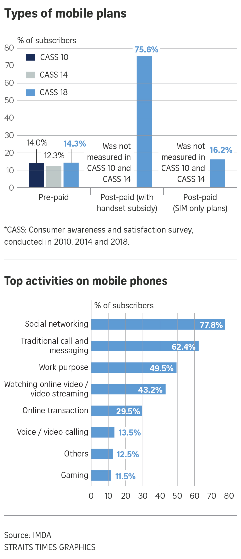 SINGAPORE - One in six mobile phone users in Singapore is now opting for line-only plans, according to an official consumer awareness and satisfaction survey.