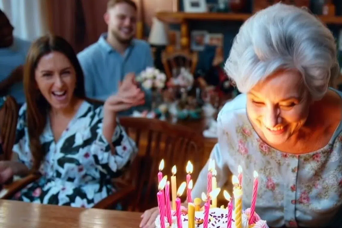 The woman is rendered with subtle blemishes on her skin, a step up in realism compared with older AI-generated videos of humans.