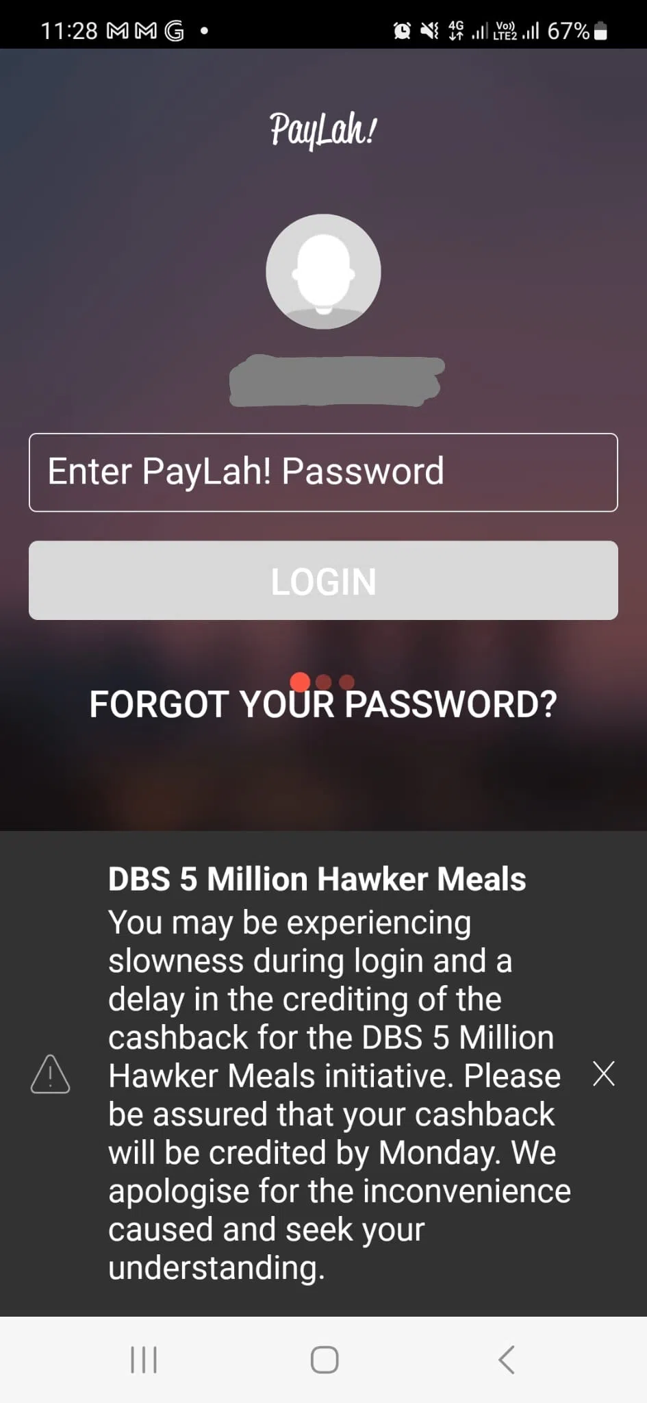 DBS PayLah app users were told that they would have to wait till Monday to receive their cashback, and to expect delays logging into the app.