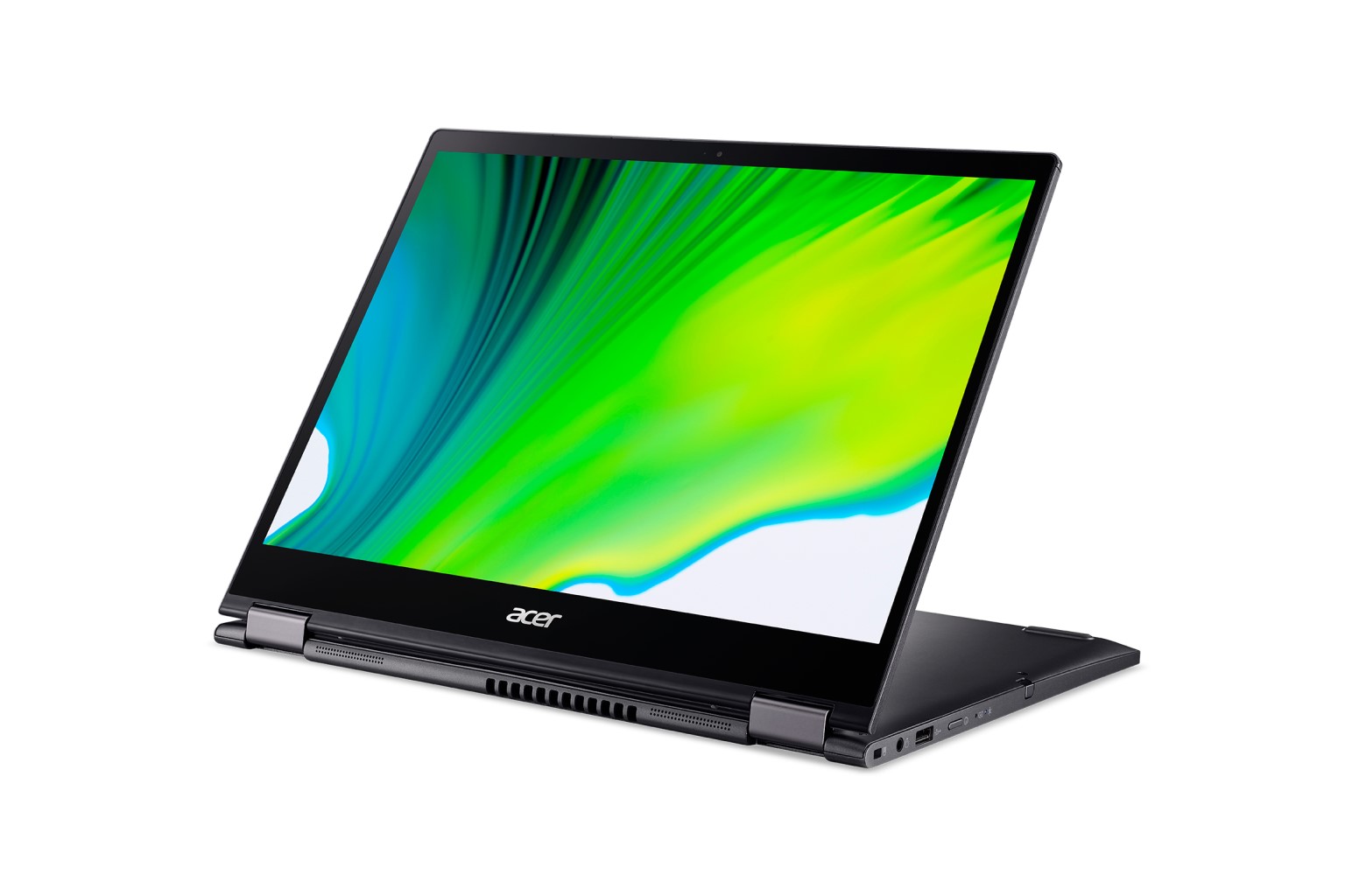 I like that the Spin 5's speakers are located near the hinges, so they face the user when the convertible is in its stand mode (with the screen front and centre, while the keyboard is face down on the desk).