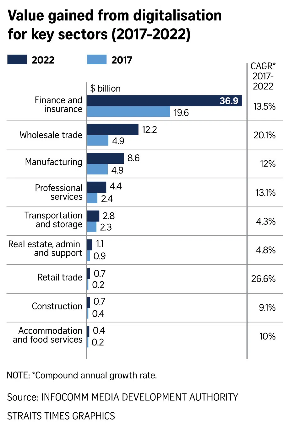 Efforts to digitalise in other parts of the economy have also grown as their economic contribution grew from $38.6 billion to $72.8 billion over the five-year period.