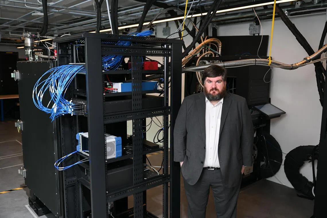 Horizon Quantum’s founder and chief executive Joe Fitzsimons with the firm’s new quantum computer set up in Singapore on Jan 26.
