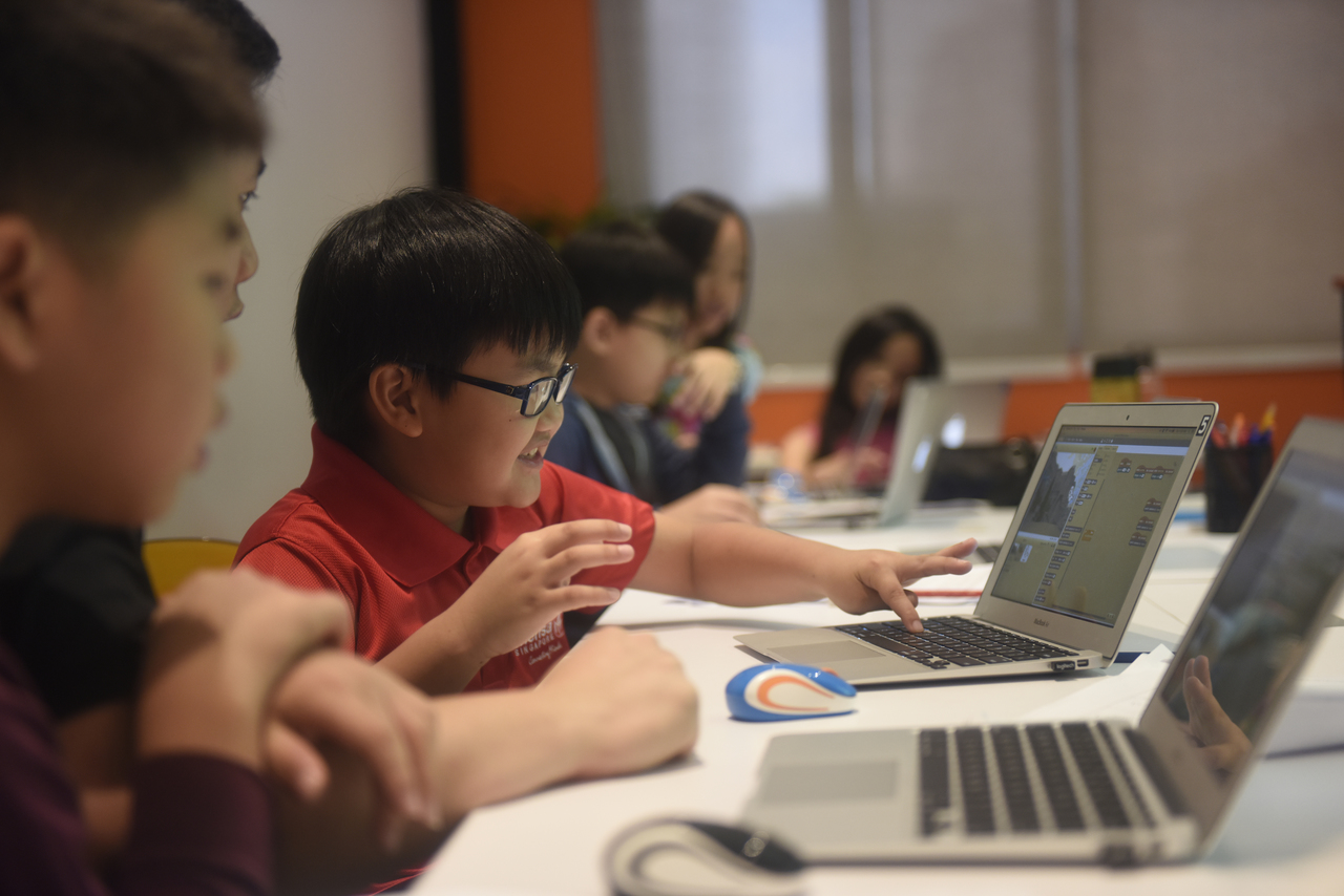 Children having a coding lesson at SG Code Campus in Parkway Centre where they learn how to create real-world applications and build computer programs that solve practical problems.