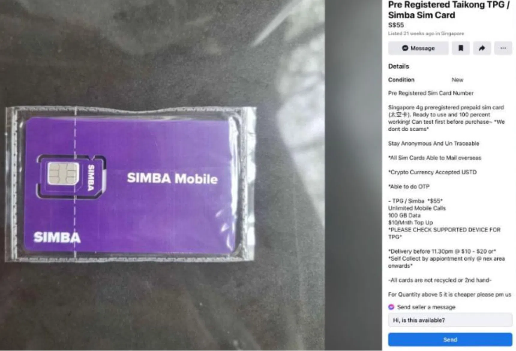 He highlighted an example of pre-registered SIM cards on Facebook Marketplace sold at $55.
