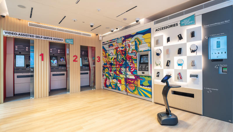 Singtel's unmanned pop-up store allows customers to try out mobile phones, sign up for subscription plans and buy mobile phone accessories round the clock and every day.