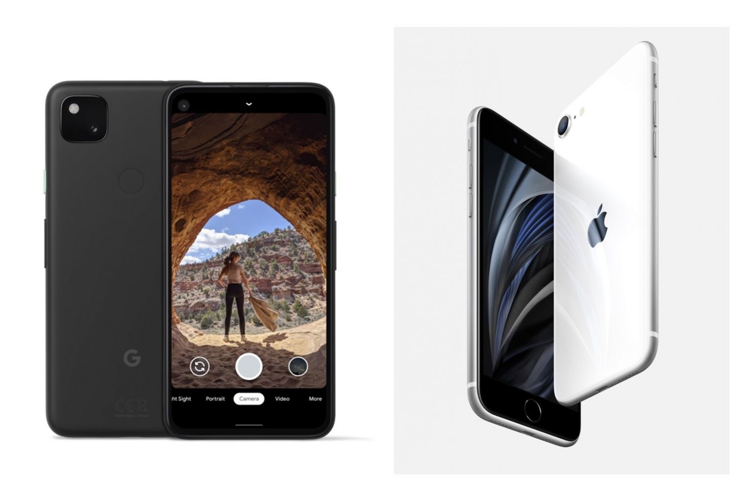 Google's Pixel 4a (left) comes out tops in areas such as design and battery life, while Apple's iPhone SE (right) has features usually found in higher-end models.