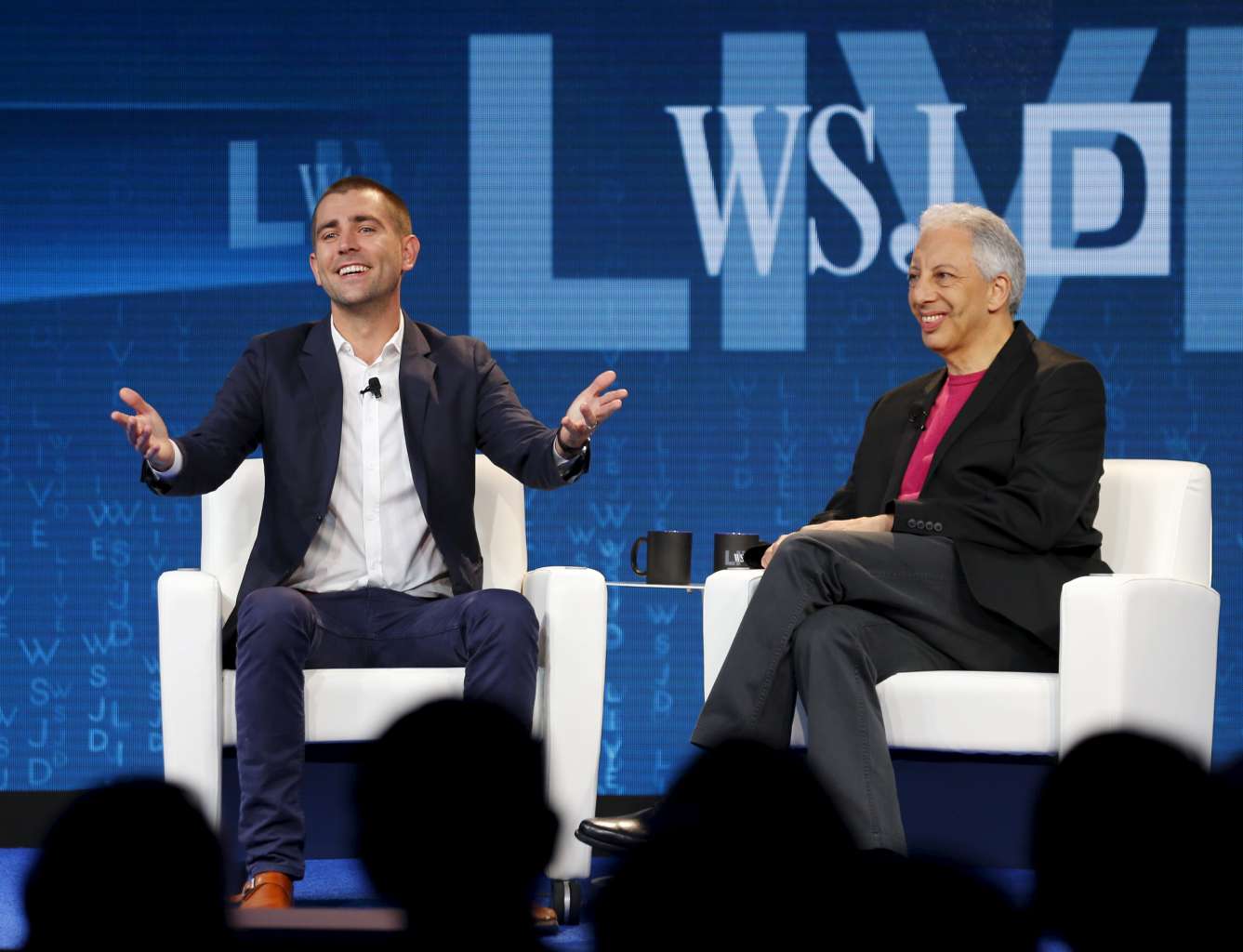 Chris Cox (left), Chief Product Officer at Facebook speaks during an interview by Jonathan Krim, Global Technology Editor of the The Wall Street Journal at the WSJDLive conference at in Laguna Beach, California on Tuesday.