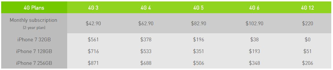 The new Apple 32GB iPhone 7 costs $561 with a 4G 3 plan, which gives subscribers 150 minutes outgoing call time and 3GB of data at $42.90 a month.