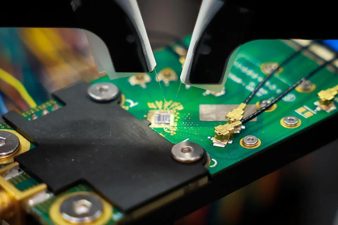 Squareroot8 Technologies’ chip-based Quantum Random Number Generator, during a showcase in its lab at Alice @ Mediapolis on Sept 26.