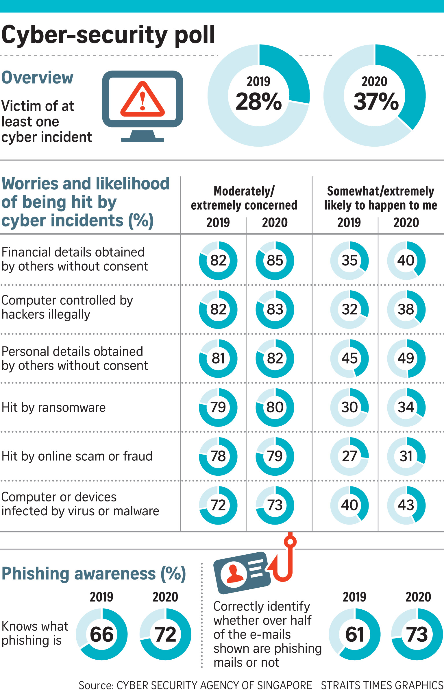 Nearly four in 10 people here, or 37 per cent, reported being victims of at least one cyber-security incident last year, according to findings from the Cyber Security Agency of Singapore's (CSA) Cybersecurity Awareness Survey released yesterday.