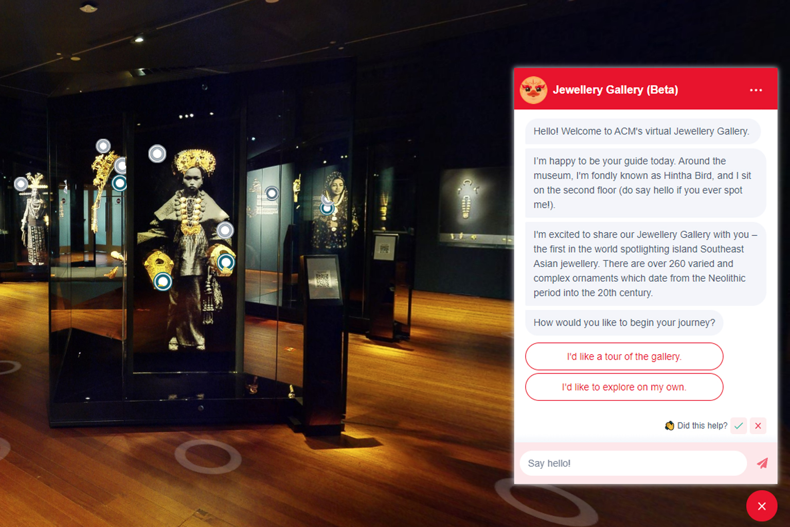 The digital assistant leads users of the Asian Civilisations Museum's website through a virtual replica of its Jewellery gallery.