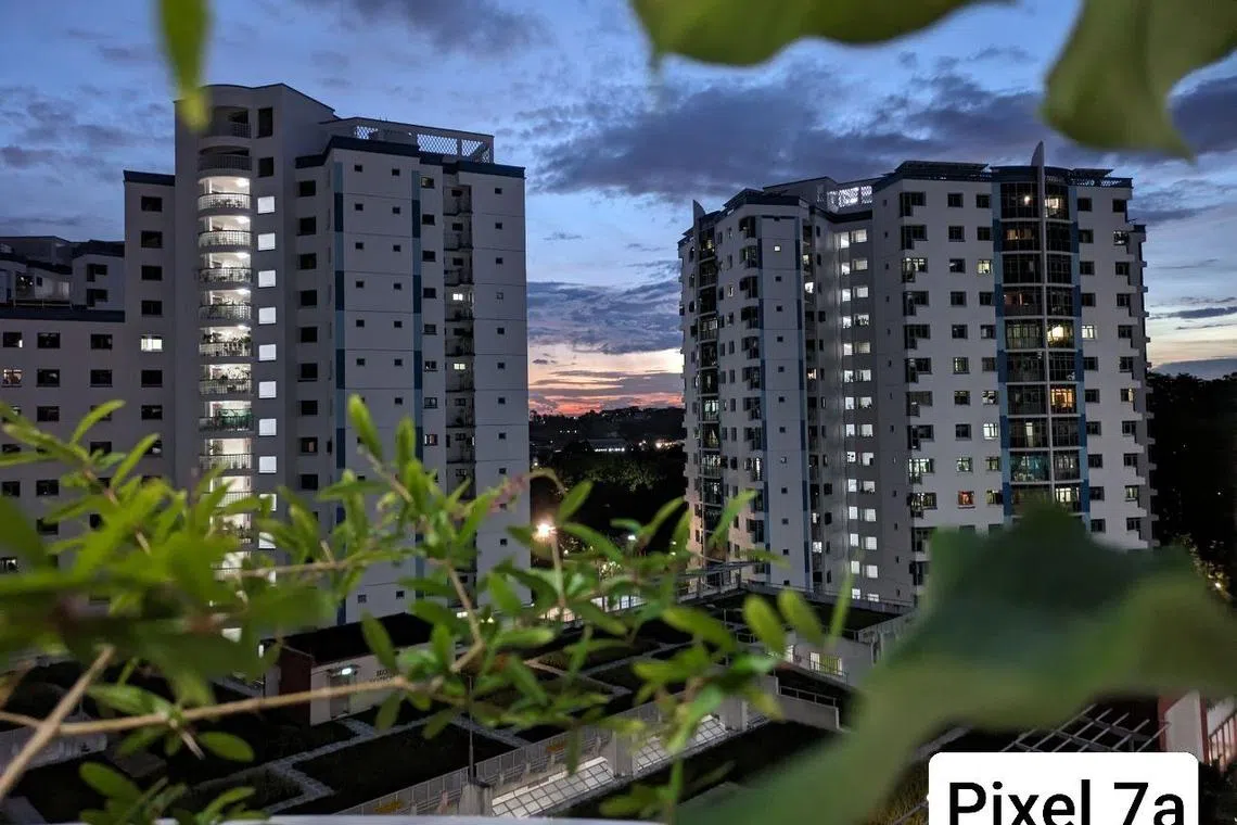 Photo of a housing estate taken on a Google Pixel 7a in the evening.