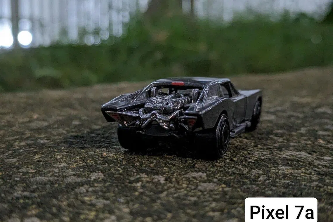 Photo of a toy car taken by a Google Pixel 7a, taken at night.