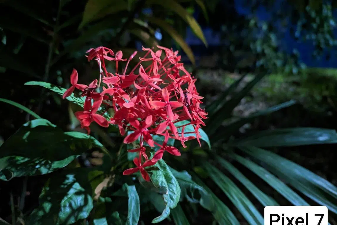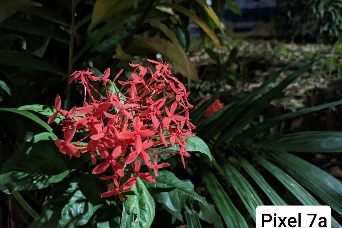 Photo of flowers taken by a Google Pixel 7a, at night.