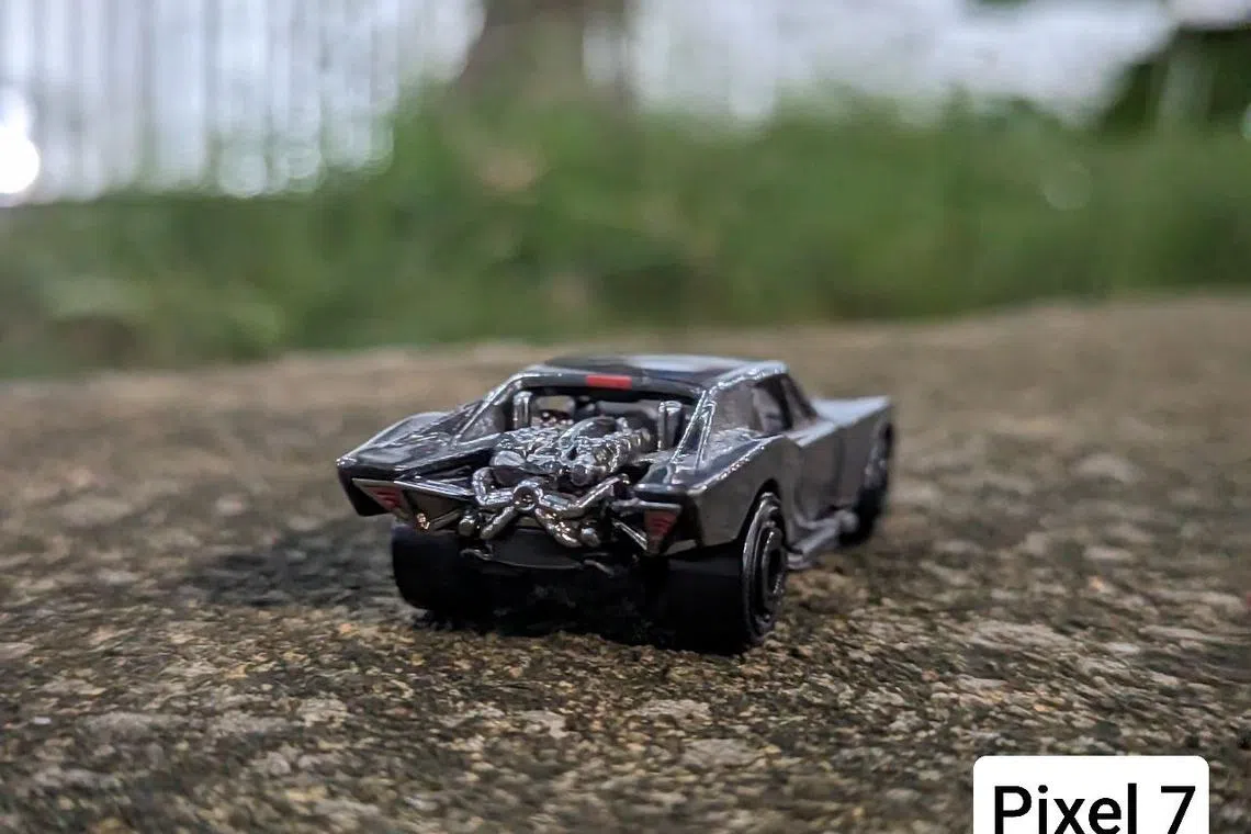 Photo of a toy car taken by a Google Pixel 7, at night.