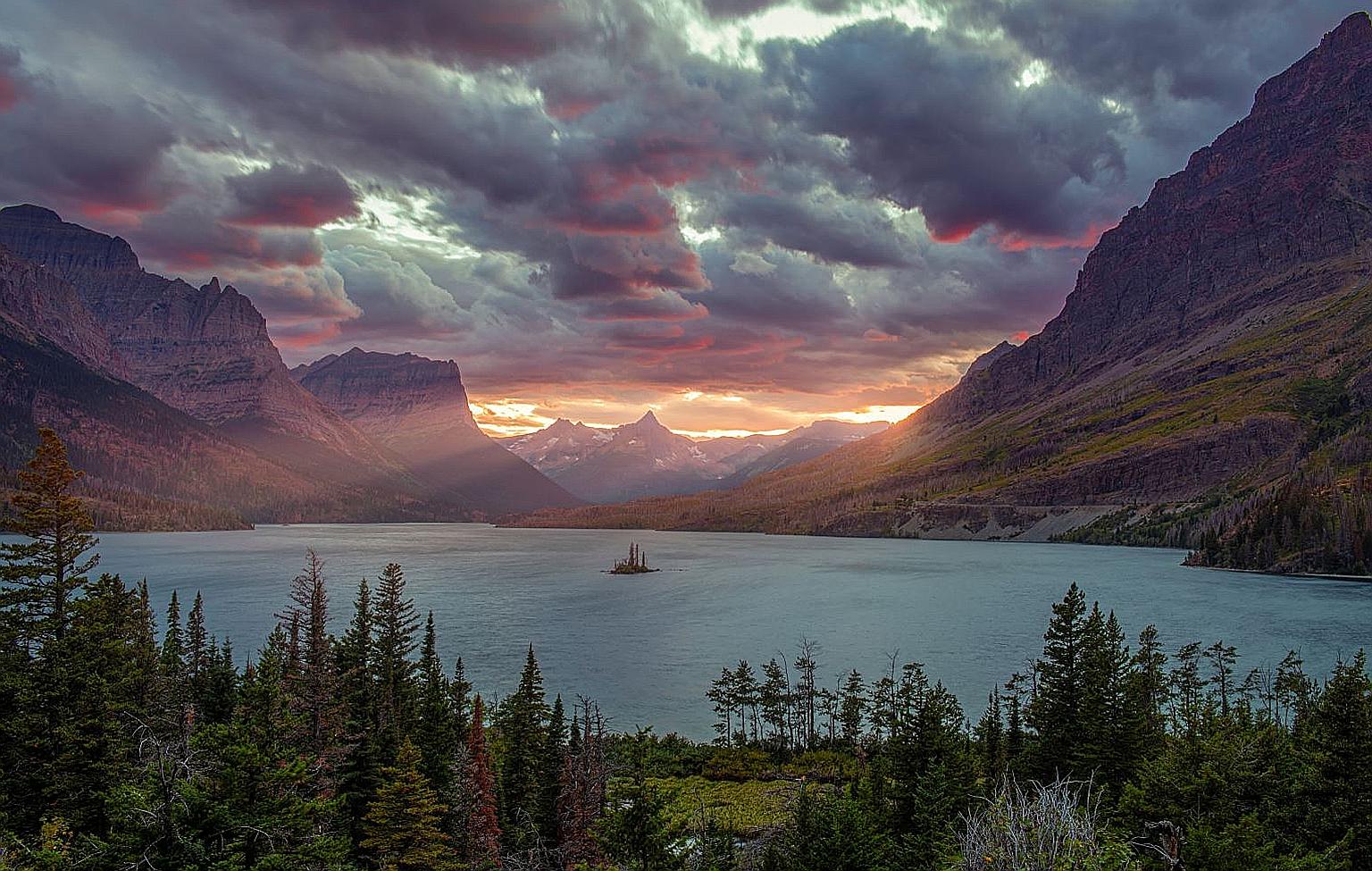 This photo of a beautiful sunset at St Mary Lake in Glacier National Park, in the US state of Montana, belies an unfortunate incident.