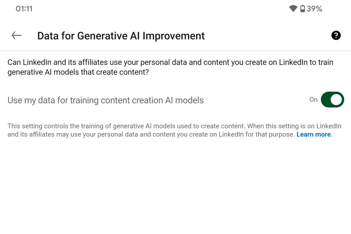 Users can choose to opt out of the use of their personal data for LinkedIn’s generative AI models, but doing so does not affect training that has already taken place, it said. To opt out, users must go to the “data privacy” section in their account settings and disable the option to “use my data for training content creation AI models”.