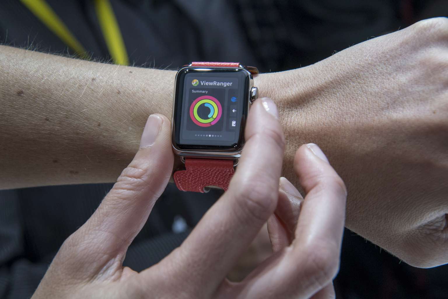 An attendee displays a new Apple Watch 2 at an event in San Francisco, California, on Sept 7, 2016.