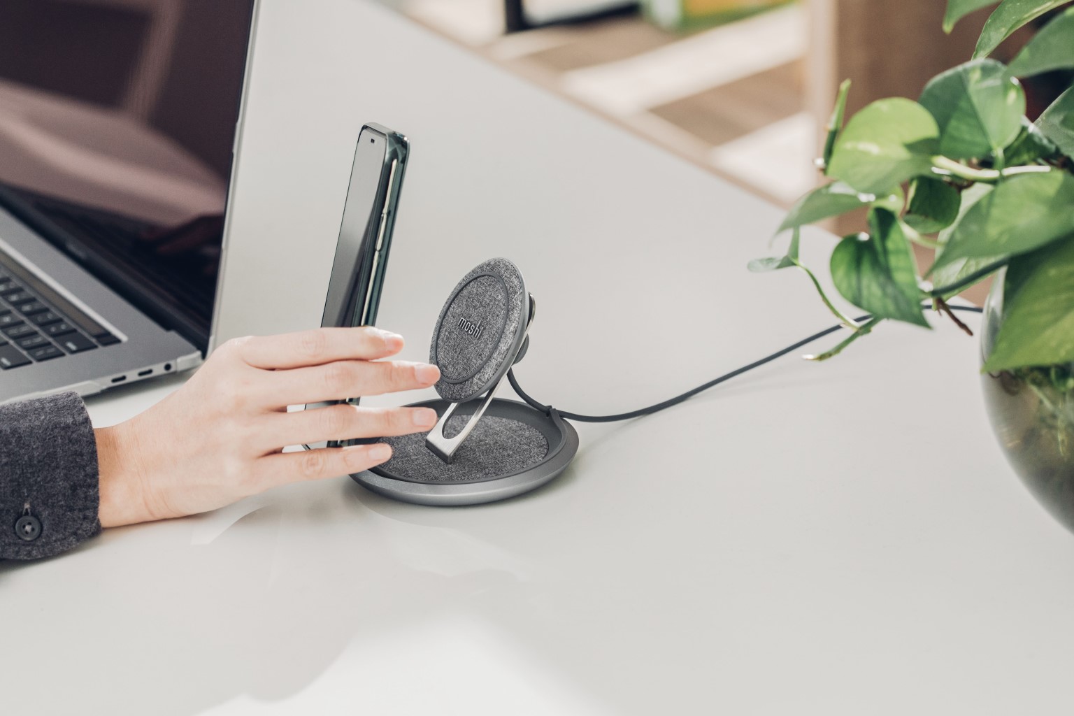 The Moshi Lounge Q looks good, offers different smartphone viewing angles and charges quite quickly.