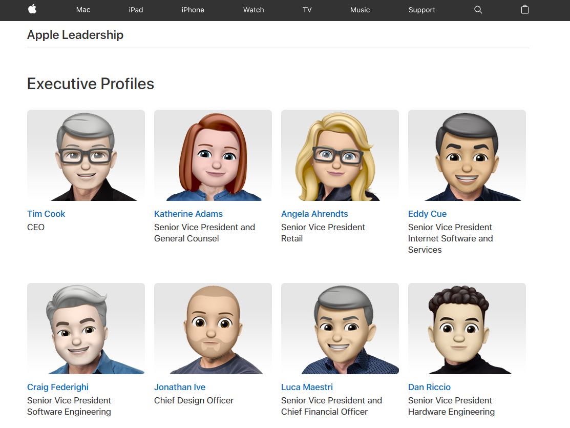 In a cheeky move to commemorate World Emoji Day, Apple also replaced the portrait photographs of its 13 company leaders with emoji versions on its website.
