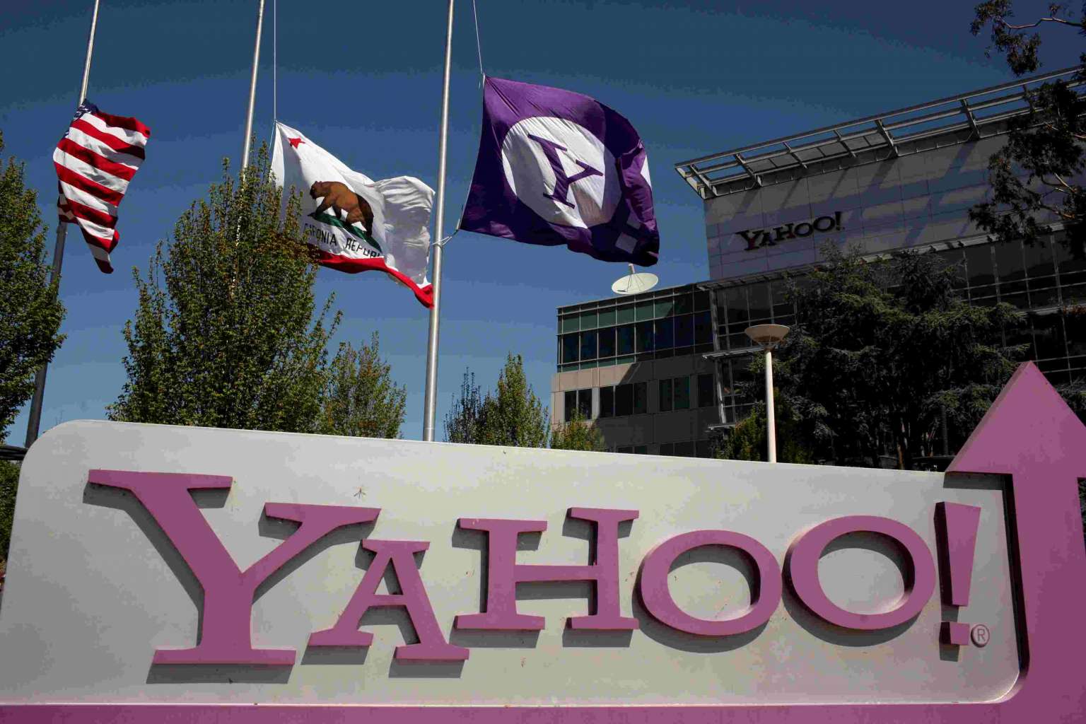The Yahoo logo is shown at the company's headquarters in Sunnyvale, California, US on April 16, 2013.