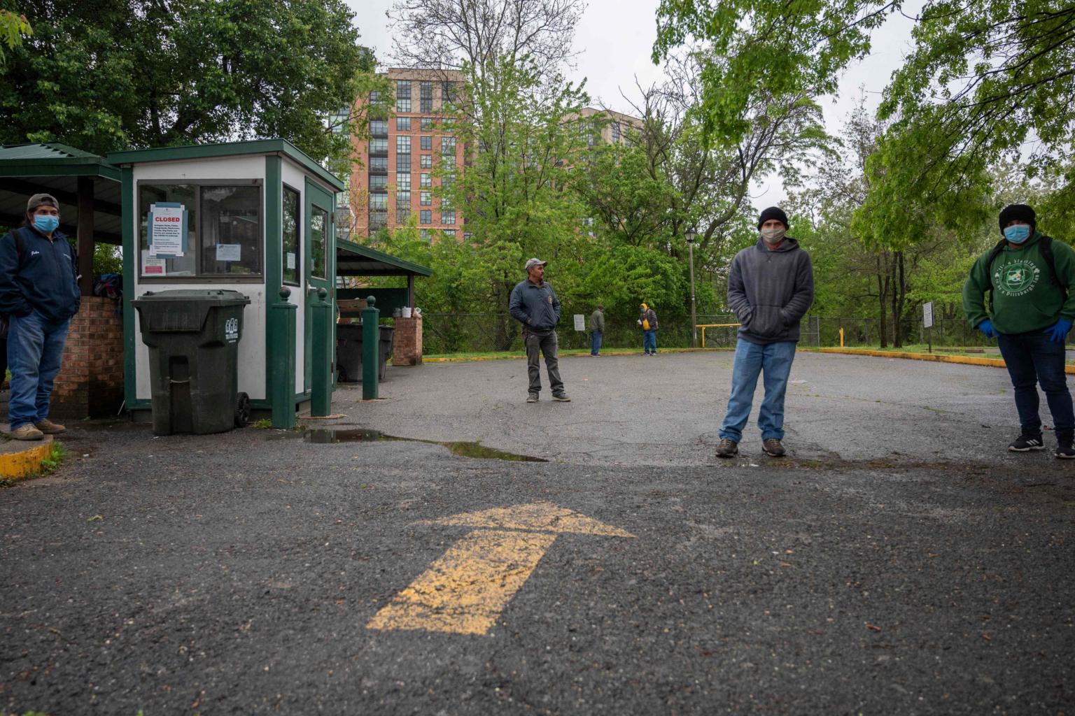Labourers wait for day jobs in Arlington, Virginia, on May 6, 2020.