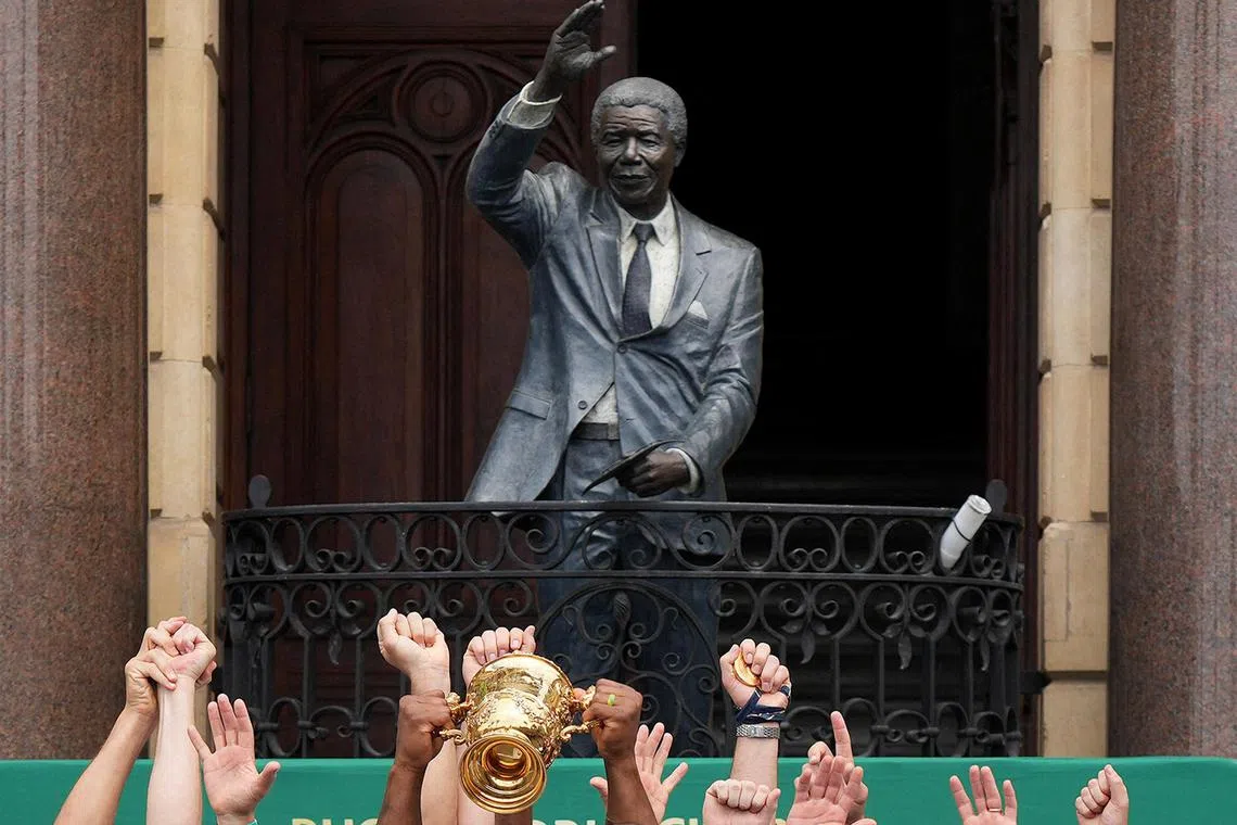 The statue of former South African president Nelson Mandela is pictured in Cape Town, South Africa, on Nov 3, 2023.