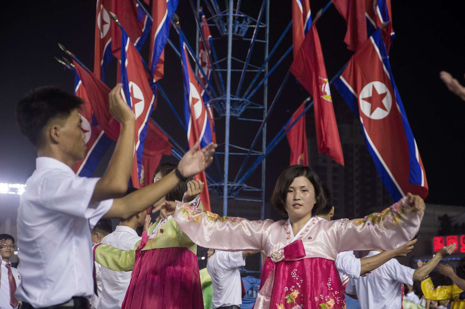 A July 6, 2017, photo shows celebrations marking the July 4 launch of the Hwasong-14 intercontinental ballistic missile, in Pyongyang.