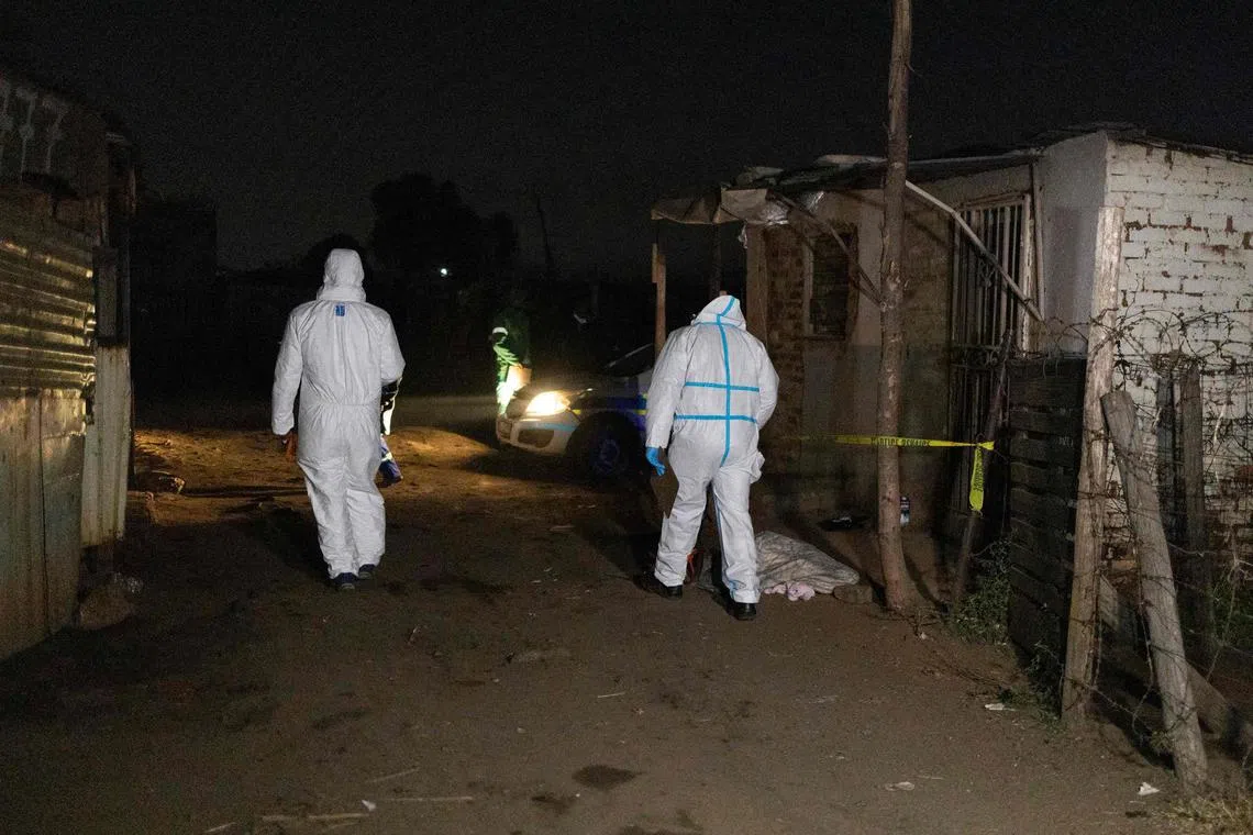 South African Police Service forensic team at the scene of a gas leak at the Angelo informal settlement in Boksburg on July 6.