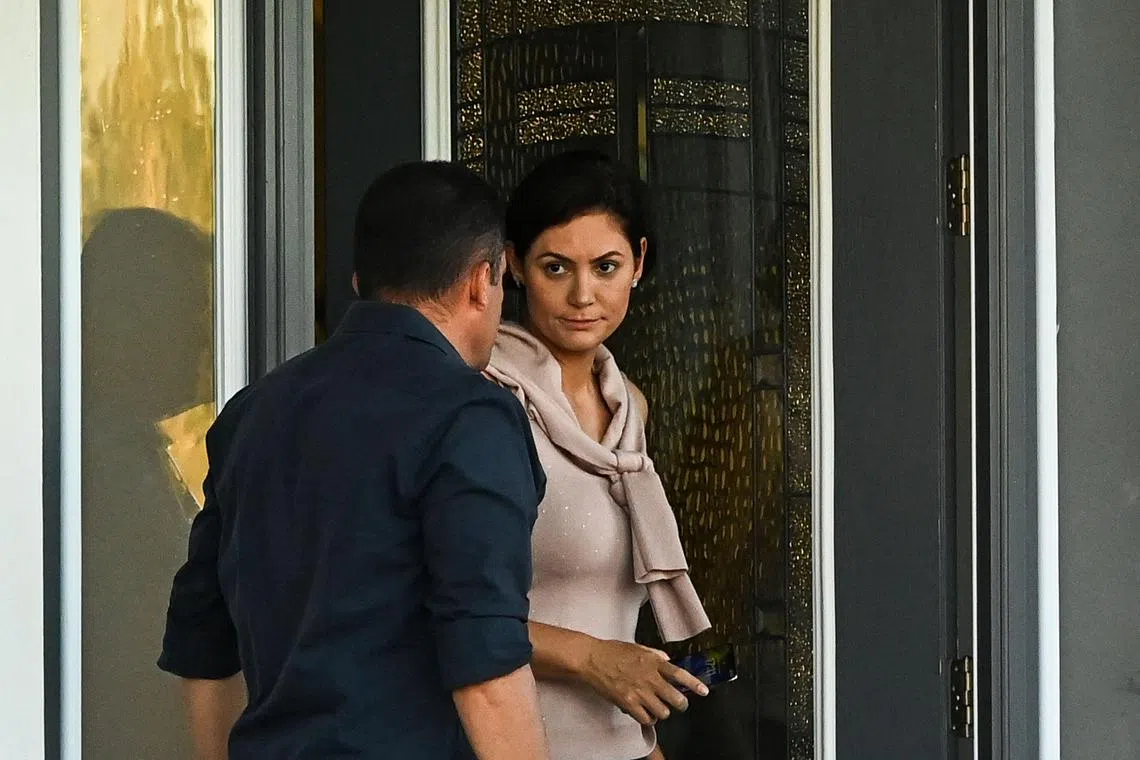 Jair Bolsonaro’s wife, Michelle, leaves their rental house in Kissimmee, Florida, on Jan 11, 2023.