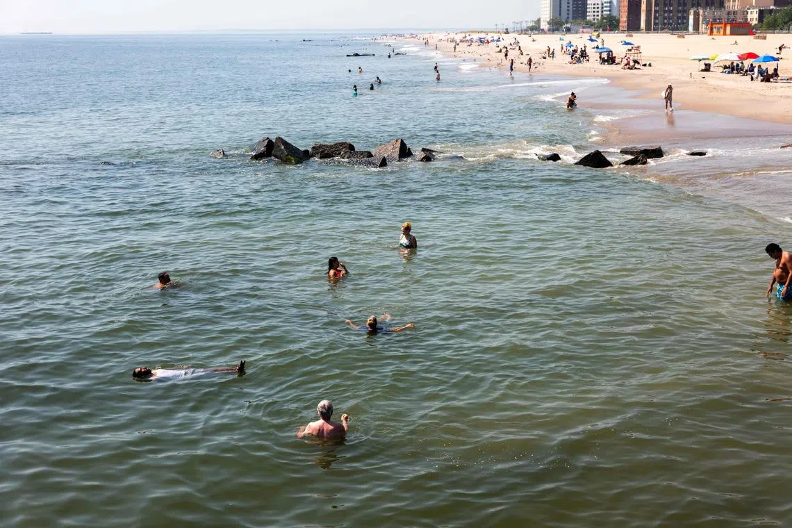 People cooling off in the water at Coney Island in the Brooklyn borough of New York City, on Sept 6, 2023.