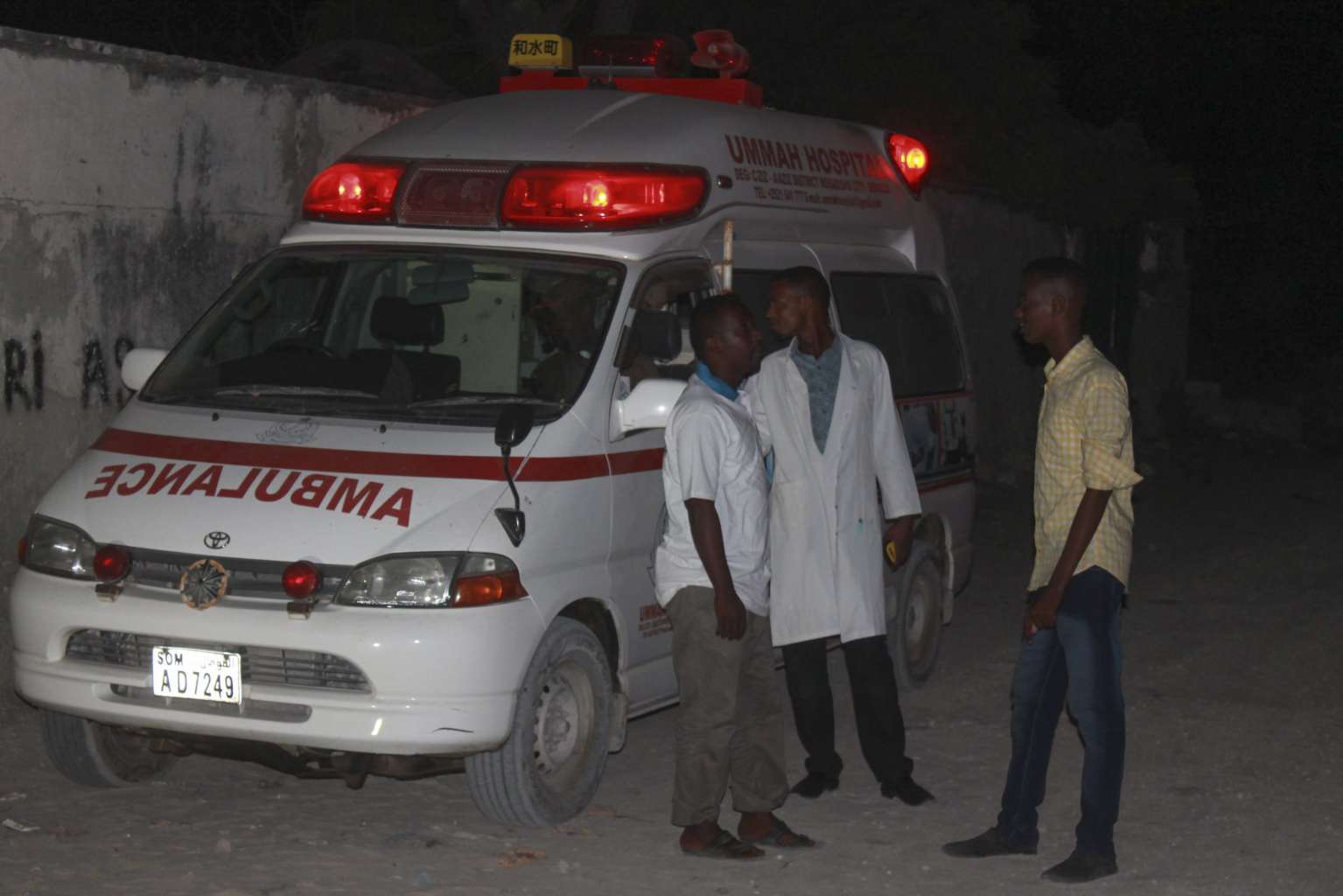 Ambulance workers near the Lido beach where gunmen exploded a car bomb and opened fire at a restaurant in Mogadishu on Jan 21.