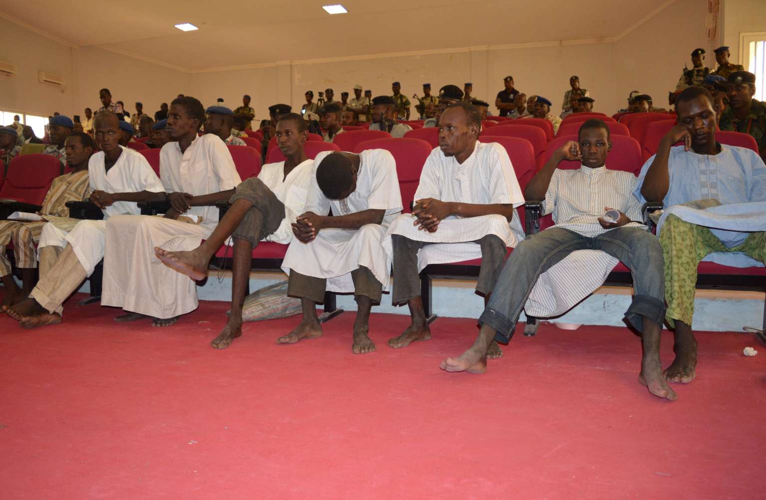 Men accused of being members of insurgent group Boko Haram attend their trial in Chad, Aug 26, 2015.