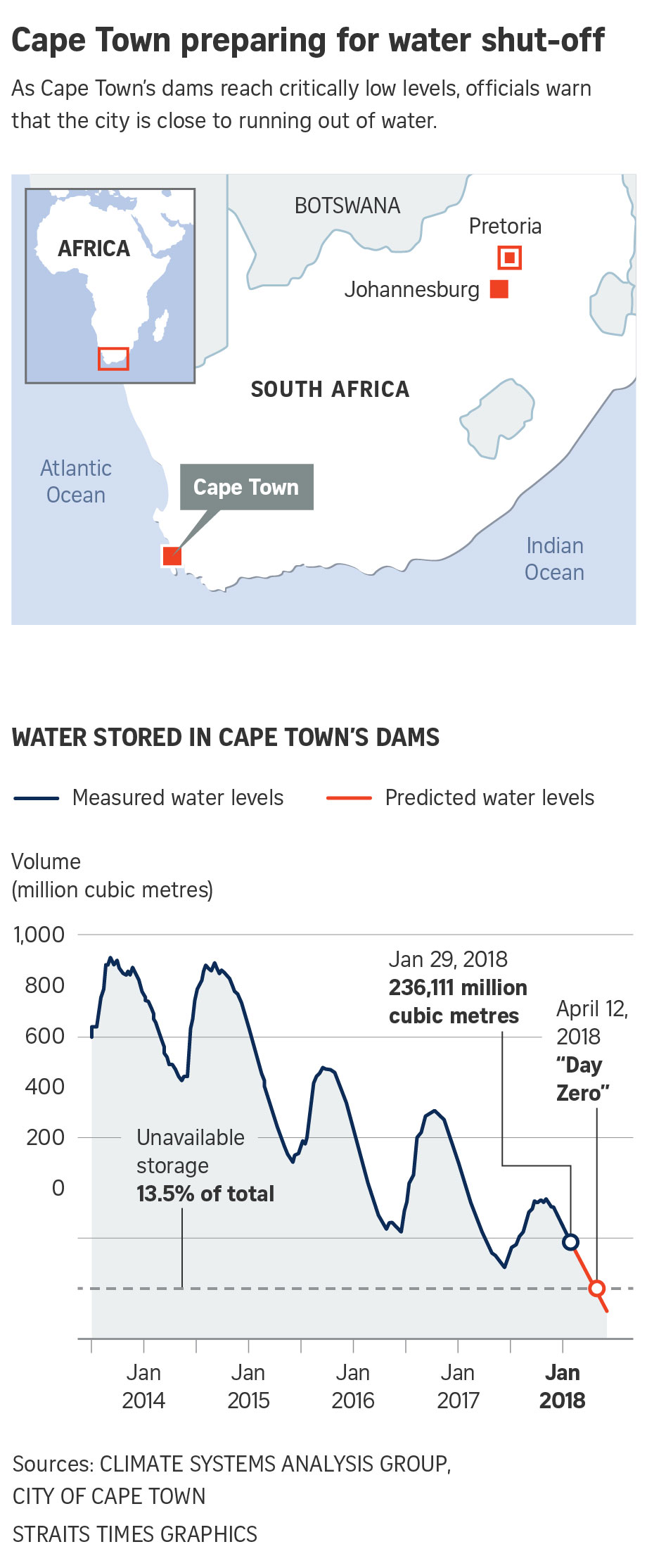 CAPE TOWN (NYTIMES) - It sounds like a Hollywood blockbuster. "Day Zero" is coming to Cape Town this April. Everyone, be warned.