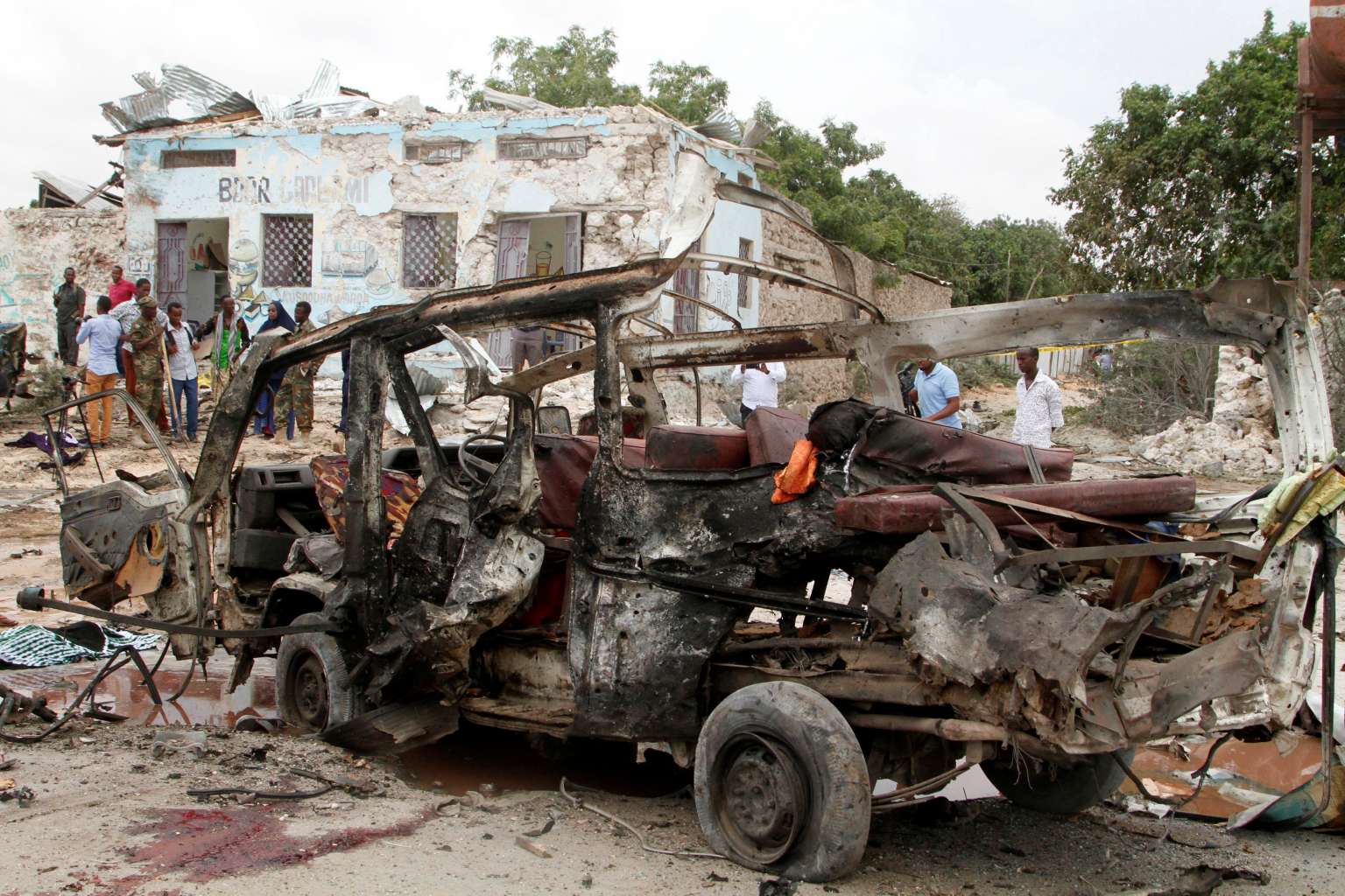 The aftermath of an explosion near a military base in Somalia's capital Mogadishu, April 9, 2017.